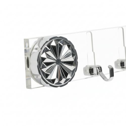 - تصميم كريستالي فاخر: تتميز بلمسات إكسسوارات حمام فاخرة كروم وشفاف مع مقابض دائرية بنقشة الألماس، مما يجعلها شماعة حائط شفافة أكريليك تضفي لمسة ديكورية عصرية.