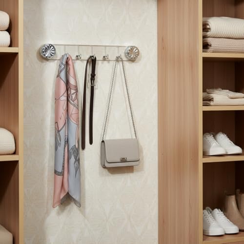- جودة ومقاومة للصدأ: مصنوعة من الأكريليك المتين مع 5 خطافات معدنية، لتكون علاقة فوط للحمام مودرن لون فضي تدوم طويلاً وتقاوم الرطوبة بفاعلية.