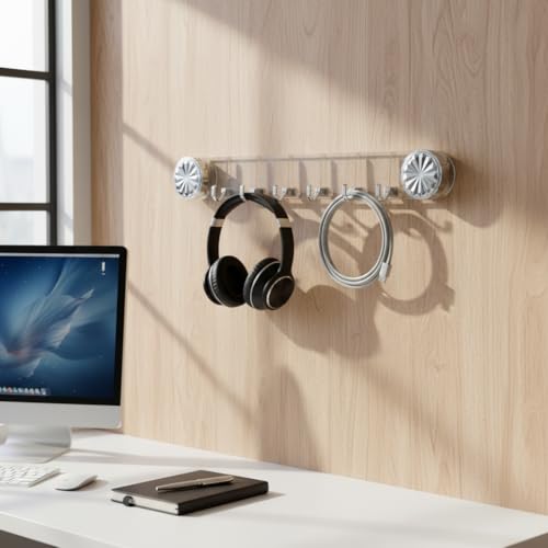 Generic - علاقة حائط مودرن شفافة بـ 5 خطافات (40 سم) - شماعة أكريليك كريستال بشفاطات تثبيت قوية بدون مسامير للحمام والمطبخ - منظم أدوات حائط فاخر لا يترك أثراً.