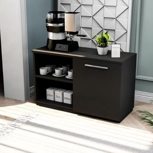 Generic - خزانة قهوة عصرية مزودة برفّين وباب تخزين، قطعة أثاث مناسبة لغرفة استراحة المكاتب، أسود