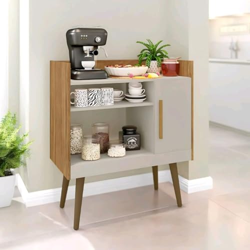 Generic - خزانة قهوة جانبية عصرية كلاسيكية بتصميم مستوحى من منتصف القرن مع أرفف للمطبخ، خشبي ورمادي