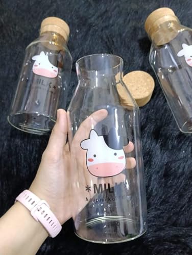 Generic - زجاجة عصرية بتصميم فريد تشبه شكل البقرة، مصنوعة من زجاج شفاف مقاوم للحرارة، ومزوّدة بغطاء خشبي فاخر لحفظ الطعم والنضارة. (1 قطعه مقاس 1200 مل)