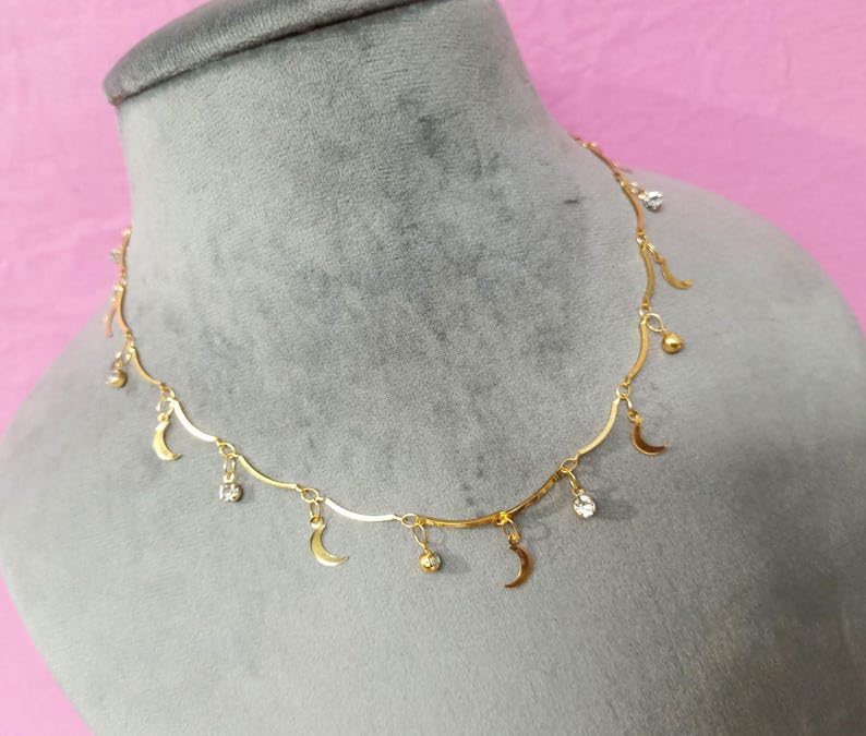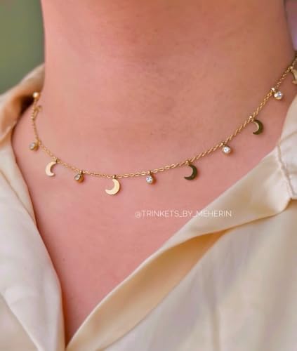 AREXOL - عقد عصري من الستانلس ستيل بتصميم هلال خفيف الوزن ومقاوم للصدا والماء مع دلاية انيقة للارتداء اليومي للنساء، اكسسوار انيق