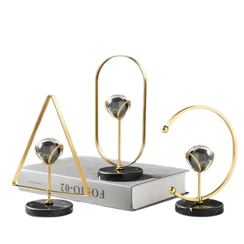 Generic - قطع ديكور كريستالية عصرية مع حامل معدني ذهبي وقاعدة رخامية، مجموعة من 3 قطع