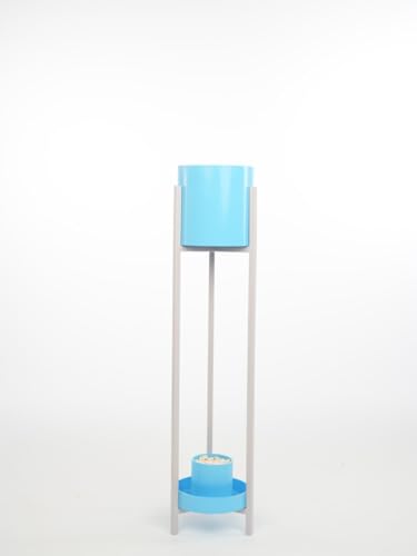 Generic - وعاء نباتات اسطواني عصري مع حامل، ازرق فاتح، مصنوع من مادة FRP-PVC مقاس 20 × 20 سم مع حامل 60 سم، مجموعة حامل نباتات داخلي مزخرف