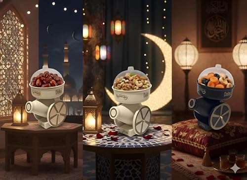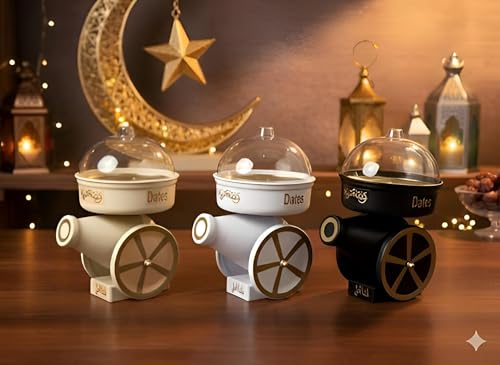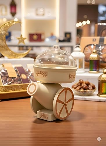 Generic - علبة تمر عصرية - صندوق انيق على شكل مدفع مع تواريخ، زخارف رمضان التقليدية تلبي التصميم المعاصر، غطاء اكريليك يحافظ على النضارة، 26 × 16 × 16 سم، متوفر بالوان نابضة بالحياة للطاولات.
