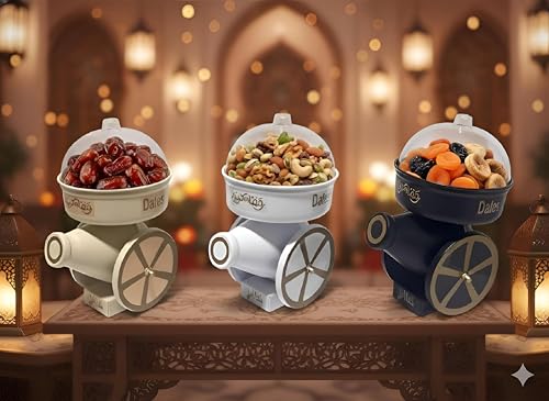 - تأتي مع غطاء أكريليك شفاف يحافظ على التمر والحلويات طازجة؛ الأبعاد 26 × 16 × 16 سم ومتوفرة بألوان متعددة.