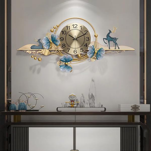 Generic - ساعة حائط ديكور بتصميم عصري، مقاس 80 × 35 سم، تصميم فراشة مع بندول، تعمل بالبطارية، لون أسود وذهبي