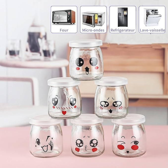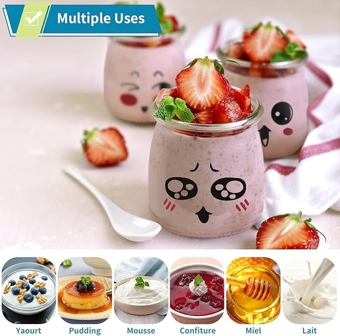 - **ميزة 4:** تم تصميم البرطمانات خصيصًا لحفظ الزبادي والكراميل والجيلي والمربى والحلويات والبودينج والحليب.