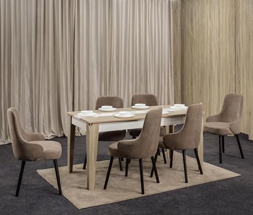 Generic - طقم سفرة مودرن 6 كراسي مع ترابيزة مستطيلة 160×80×76 سم قماش كتان (ترابيزة مزودة بخط ابيض)