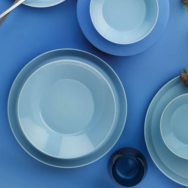 Generic - طقم عشاء عصري، أطباق وبولات بورسلين بلون أزرق فاتح، طقم طعام 24 قطعة مع أطباق عميقة زجاجية كحلي