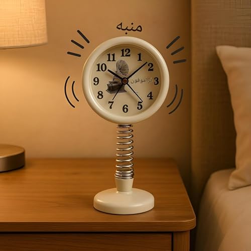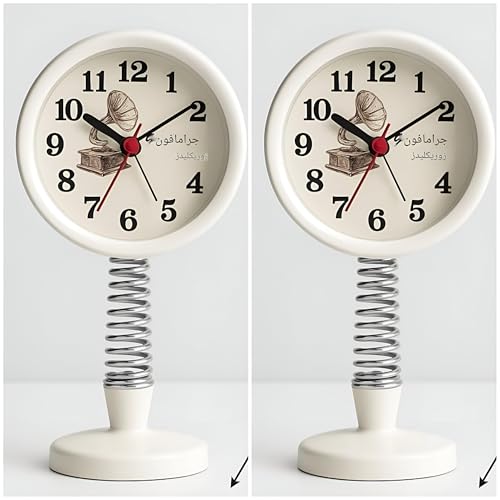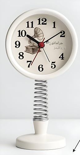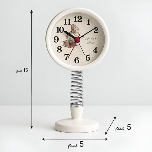 Generic - شاشة عرض عصرية - ساعة مكتب وسيارة صغيرة مزدوجة الأغراض مع كوارتز صامت، قاعدة زنبركية من الستيل المتين، لمسة نهائية بيضاء، ارتفاع 15 سم، عرض 5 سم