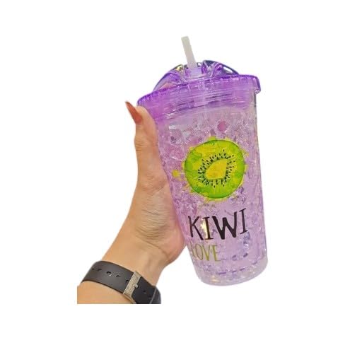 Generic - كوب عصري مزدوج الجدار بتصميم انيق مع سائل تبريد داخلي وغطاء شفاف (موف)
