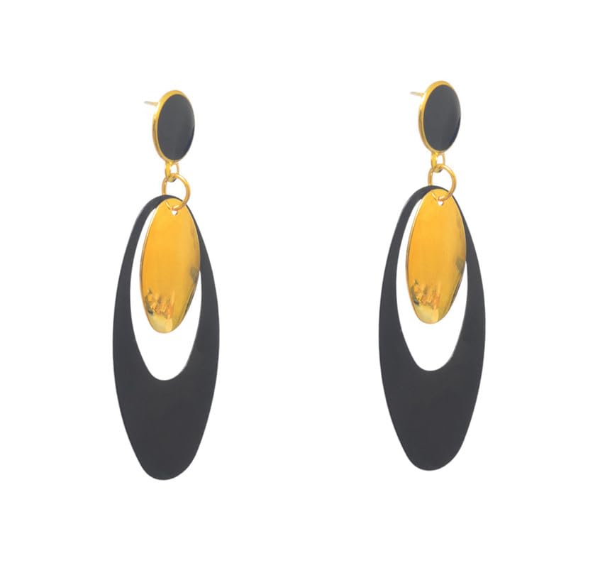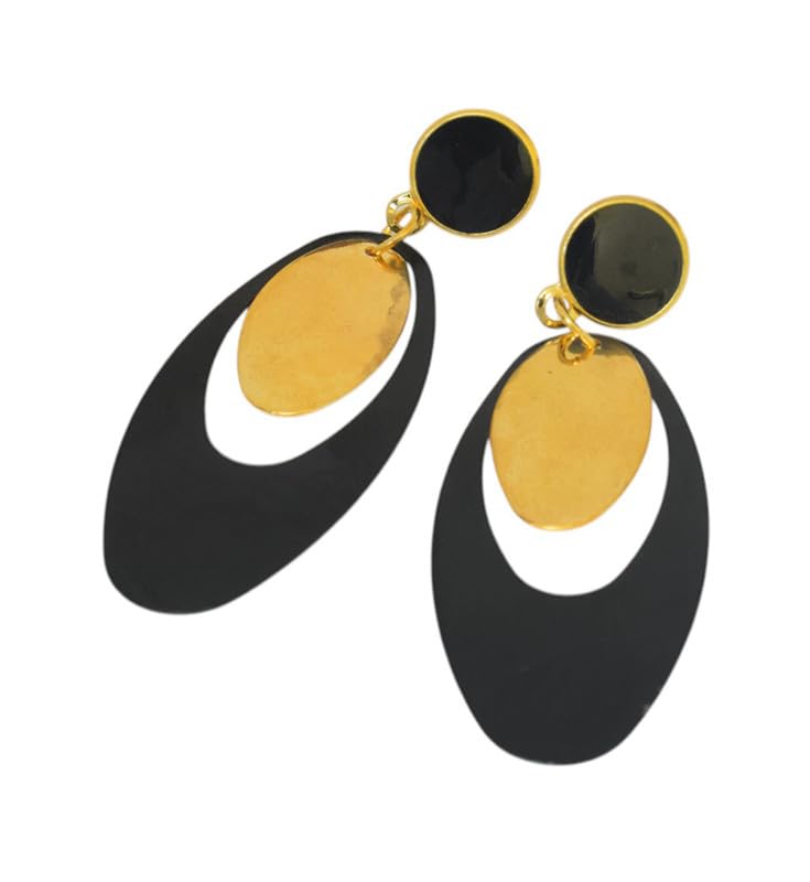 Generic - حلقان عصرية بطابع حديث للنساء من 2 قطعة، بلون أسود