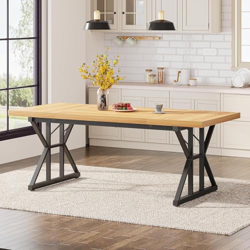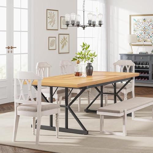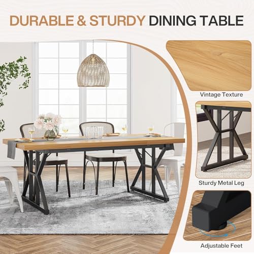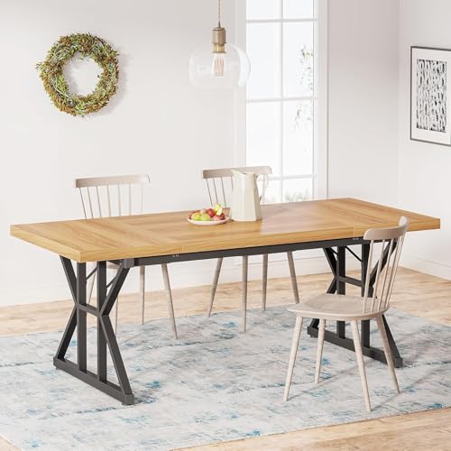 Generic - طاولة طعام حديثة قابلة للتمديد بلمسة نهائية من الخشب الصلب وأرجل معدن متينة، طاولة مطبخ مستطيلة عصرية لغرفة الطعام وغرفة المعيشة ومساحات المنزل من ام ايه ستور
