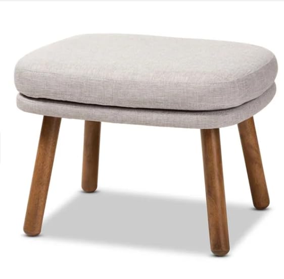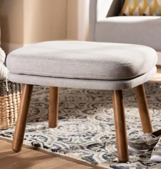 Generic - مسند قدم من القماش الحديث مع ارجل خشبية من منتصف القرن، مسند قدم مبطن منجد لغرفة المعيشة وغرفة النوم والمكتب، رمادي فاتح