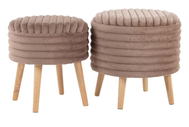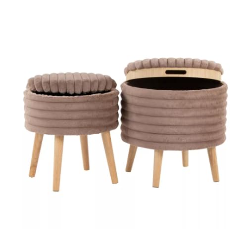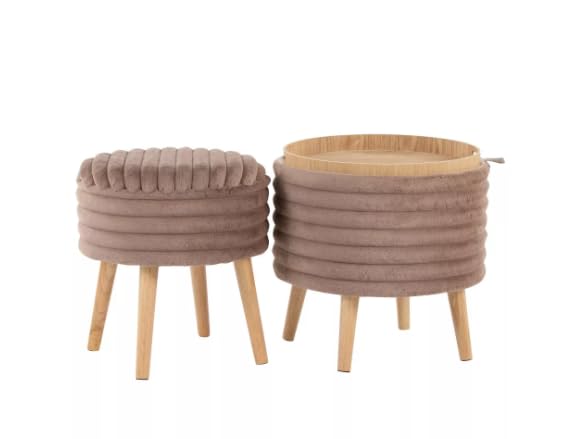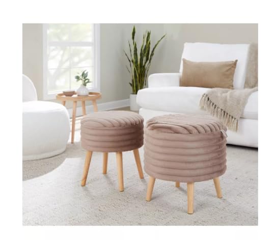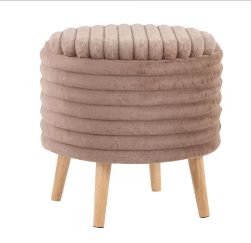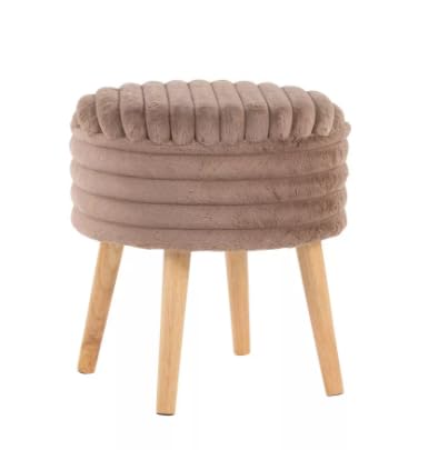 Generic - مجموعة مسند قدم عصري مضلع من الفرو الصناعي، مسند قدم دائري مخملي ناعم، ارجل خشبية مدببة من منتصف القرن، مقعد فانيتي موف محايد، مقعد اضافي لغرفة المعيشة