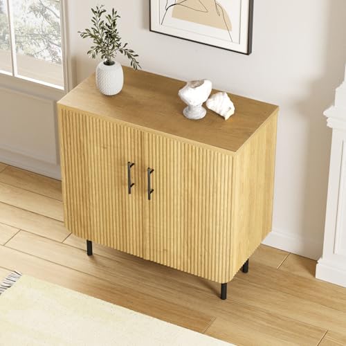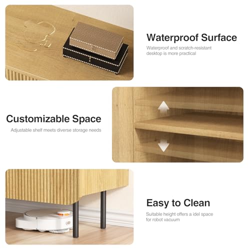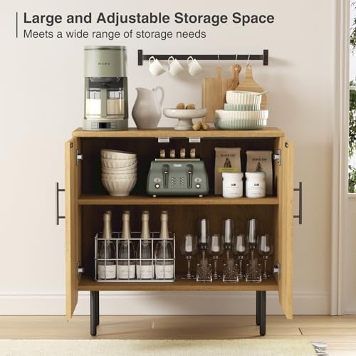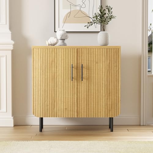Halitaa - خزانة تخزين عصرية ذات تصميم مضلع طبيعي ببابين، وأرفف قابلة للتعديل، وأرجل معدنية، بوفيه جانبي مميز لغرفة المعيشة وغرفة الطعام والمدخل (طبيعي وأسود)