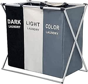Generic - سبت غسيل عصري قابل للطي مقسم إلى 3 أجزاء بخامة عالية الجودة وتصميم أنيق – منظم ملابس متعدد الاستخدامات لتصنيف الغسيل وتوفير المساحة باحترافية L