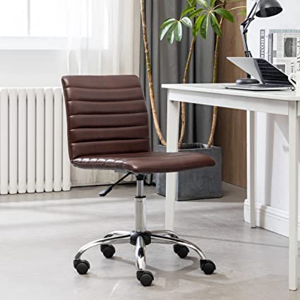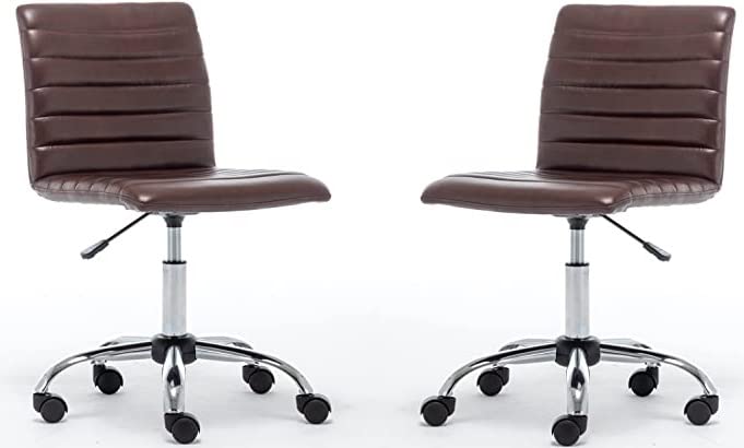 Modern Future - طقم كرسي مكتب منزلي من الجلد الناعم الى منتصف الظهر بدون ذراع بارتفاع قابل للتعديل مع عجلات، مجموعة من قطعتين من مودرن فيوتر، بني