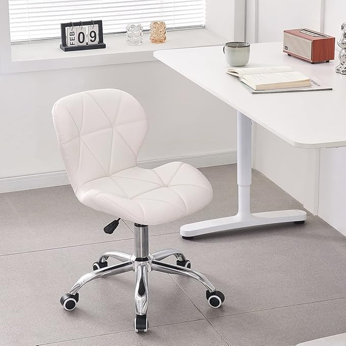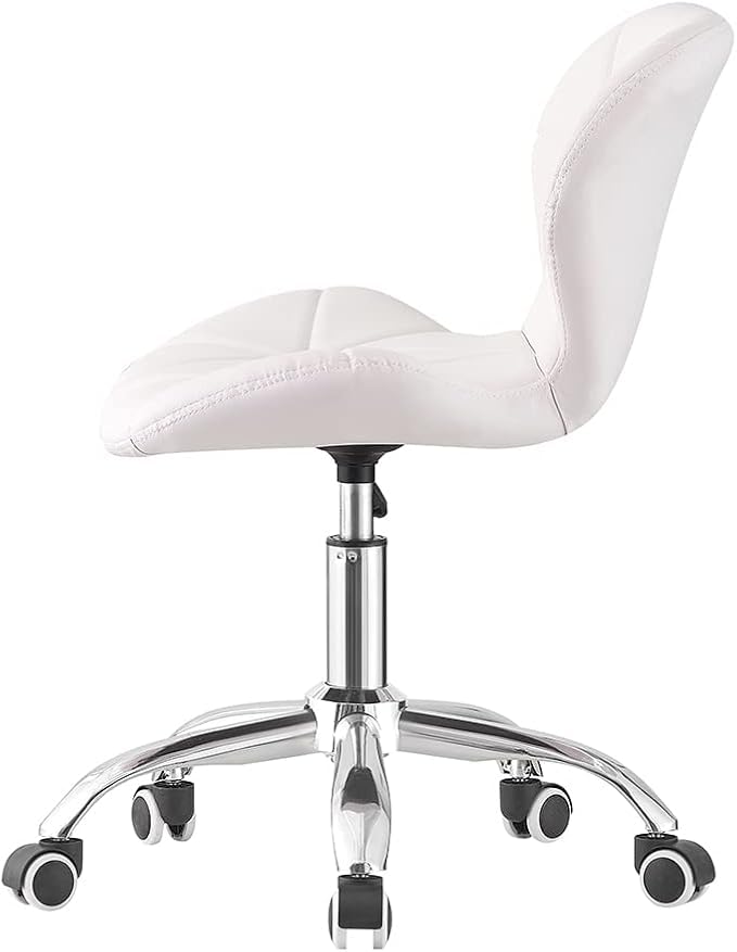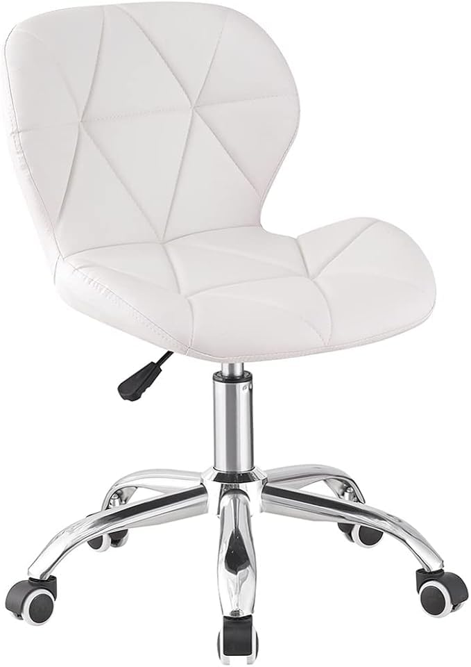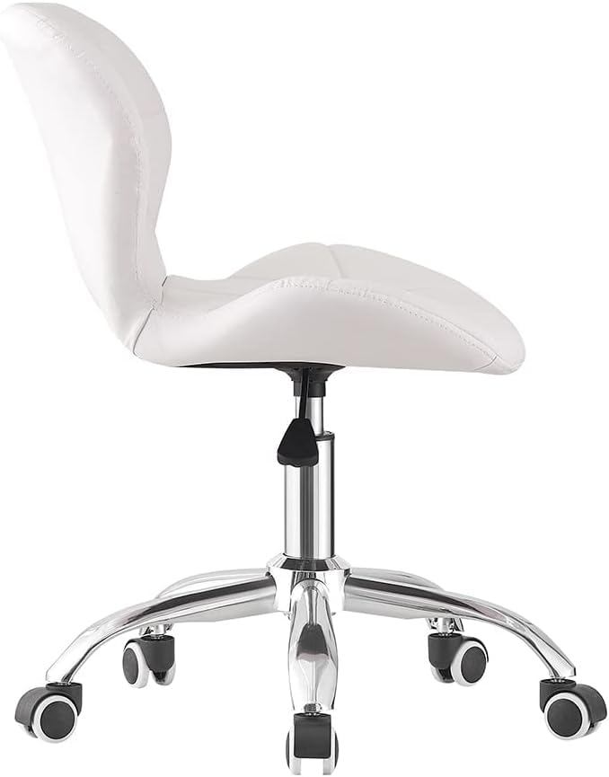 Modern Future - كرسي مكتب قابل للدوران بارتفاع قابل للتعديل بتنجيد من الجلد الصناعي مع قاعدة كروم قابلة للرفع، مريح للدراسة للاستخدام في المنزل وغرف النوم من مودرن فيوتشر - أبيض