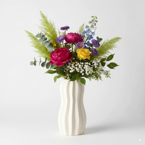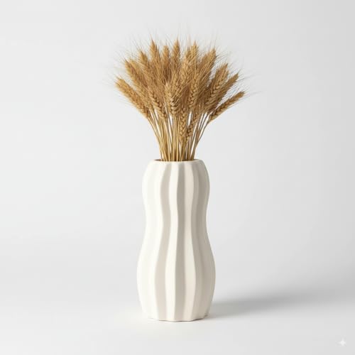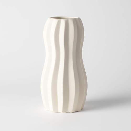 Generic - فازة زهور من السيراميك بتصميم هندسي عصري، لون أبيض، تصميم مموج مزخرف