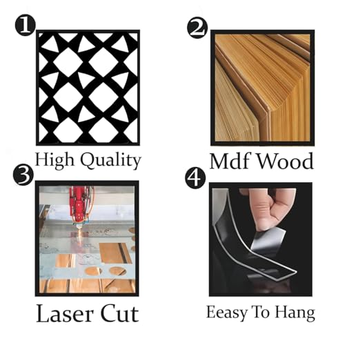 - الخامة والبناء: مصنوع من خشب ليفي متوسط الكثافة (لوح ليفي متوسط الكثافة) مع أنماط مقصوصة بدقة، بلمسة نهائية باللون الأسود الأنيق لمتانة دائمة