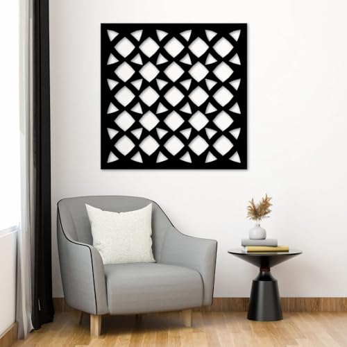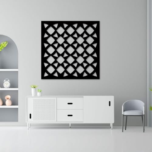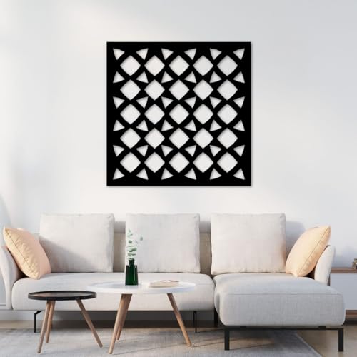 Generic - لوحة فنية جدارية عصرية هندسية من خشب ام دي اف بلون اسود، نمط شبكي مربع، ديكور منزلي معاصر، لوحة حائط داخلية (مقاس M)
