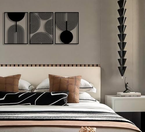 Generic - لوحات فنية جدارية تجريدية بنمط هندسي حديث، أسود، مقاس متوسط، 3 قطع