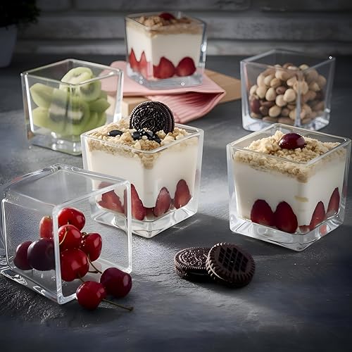 - تتضمن هذه المجموعة ستة بولات زجاجية شفافة فائقة النقاء بتصميم مربع حديث يضفي لمسة راقية على تقديم الحلويات مثل الأرز باللبن أو الجيلي أو سلطة الزبادي، مما يجعلها مثالية للاستخدام اليومي والمناسبات الخاصة مثل رمضان.