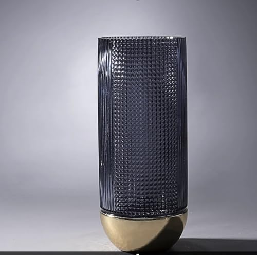 Generic - فازة زجاجية بشكل أسطواني عصري مع قاعدة ذهبية، بنقشة بلون أزرق كحلي، فازة زهور ديكور للمنزل