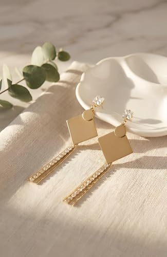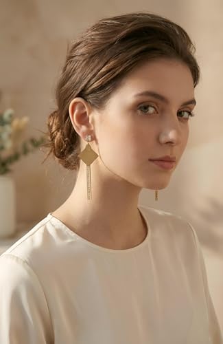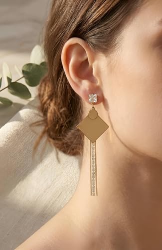 Generic - اقراط ذهبية عصرية - اقراط متدلية انيقة طويلة مصنوعة من الستانلس ستيل مع سبعة تصميمات معاصرة، مثالية للاناقة اليومية والمناسبات الخاصة.
