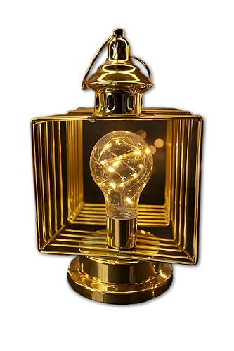 Generic - مصباح ذهبي عصري - فانوس مزخرف ليد أنيق مع إضاءة دافئة وناعمة، مصمم لتعزيز أجواء رمضان وتوفير الأناقة للشرفة وديكور المنزل الفاخر.