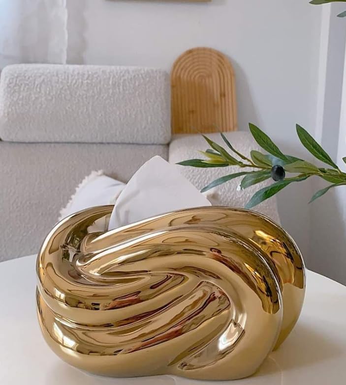 - تصميم أنيق: يضيف منظم علبة المناديل العصري المصمم على شكل عقدات ذهبية لمسة زخرفية راقية إلى ديكور أي غرفة.