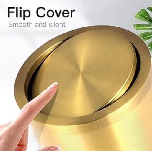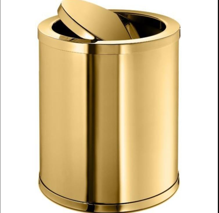 - تصميم فاخر: هيكل من الفولاذ المقاوم للصدأ مع طبقة خارجية ذهبية فاخرة، مصممة بشكل أسطواني أنيق وآلية غطاء متأرجح لتزيين الحمام أو المكتب بذوق أنيق.