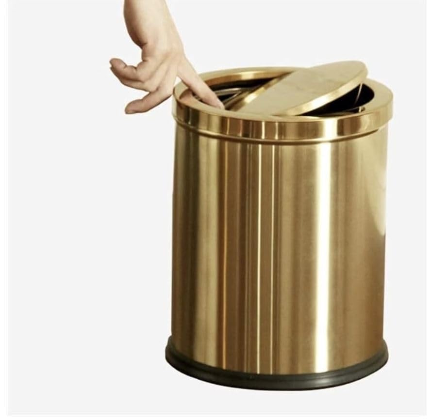 Generic - سلة مهملات عصرية مع غطاء متأرجح، حاوية نفايات من الفولاذ المقام للصدأ بتصميم أسطواني دائري، ديكور للمنزل والحمام والمكتب، لون ذهبي