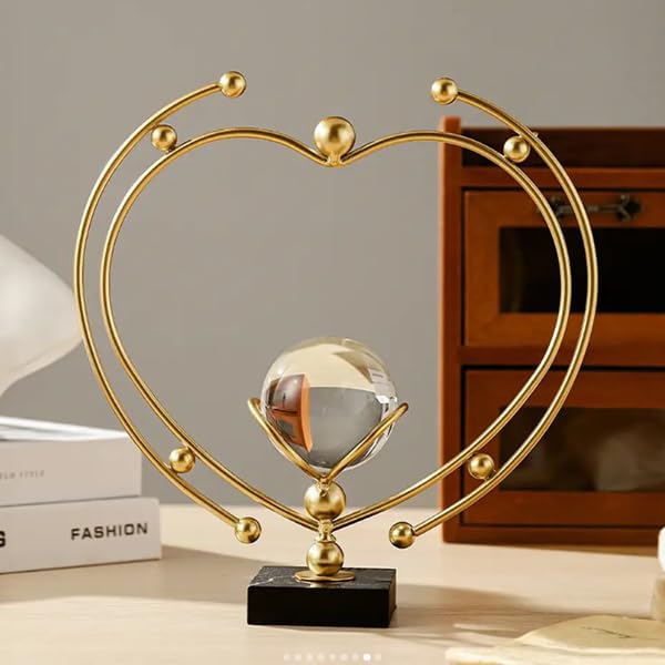 Generic - حامل عرض كروي كريستالي عصري على شكل قلب، اطار معدني ذهبي مع قاعدة سوداء، ارتفاع 30 سم، ديكور منزلي معاصر
