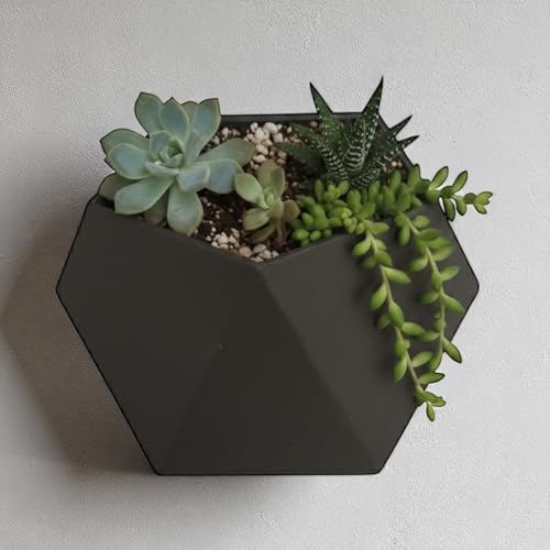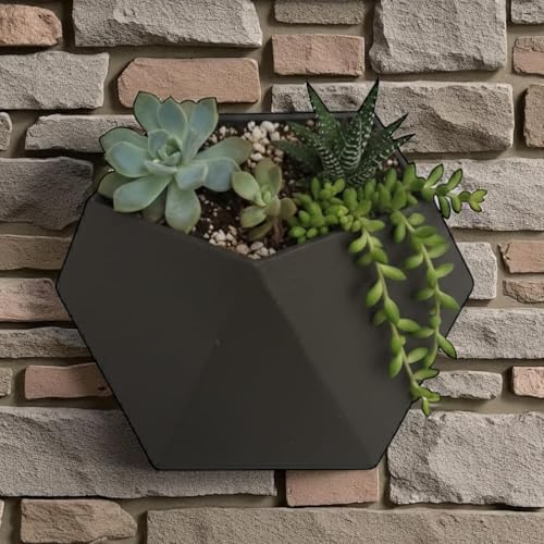 Generic - أصيص حائط سداسي عصري، لون أسود، مصنوع من مادة بي ال ايه، تصميم مطبوع بتقنية ثلاثية الأبعاد، وعاء زهور مزخرف يثبت على الحائط داخليًا وخارجيًا، علبة نباتات عصارية