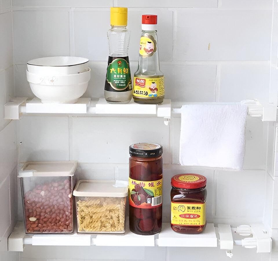 - 【إضافة مساحة تخزين إضافية】يساعد على منع الازدحام على رف واحد. مفيد لتقسيم كومة من الملابس في الخزانة أو زيادة مساحة التخزين في المطبخ.