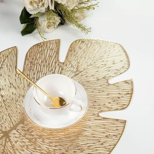 Generic - قاعدة أكواب وتقديم طعام كبيرة من الجلد الحديث، مفرش طاولة كبير للأطباق والصواني، واقي طاولة من الجلد عالي الجودة لطاولة الطعام مقاوم للحرارة وسهل التنظيف بقطر 46 سم (ورقة شجر)