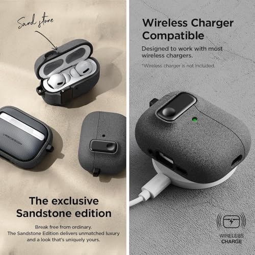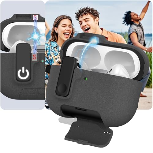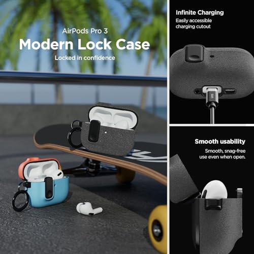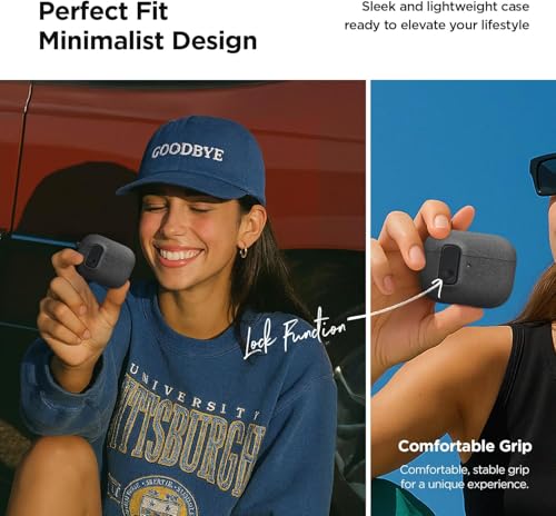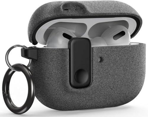 GBUFIYSN - حافظة عصرية بقفل لجهاز ابل ايربودز برو الجيل الثالث (2025): نمط واقي انيق مع قفل امان متوافق مع سماعات ايربودز برو 3 (رمادي منفوش)