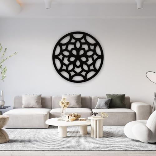 Generic - لوحة فنية جدارية مودرن ماندالا ام دي اف، تصميم دائري اسود، متوفرة بـ 3 مقاسات (30-60 سم)، ديكور منزلي معاصر، نمط هندسي (مقاس M)