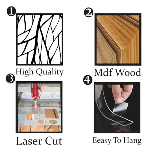Generic - لوحة فنية جدارية عصرية بتصميم غصن شجرة مصنوعة من لوح ألياف متوسط الكثافة بلون أسود، متوافرة بـ 3 مقاسات (40 × 40 سم، و60 × 60 سم، و80 × 80 سم)، لوحة ديكور معاصرة للمنزل (مقاس متوسط M)