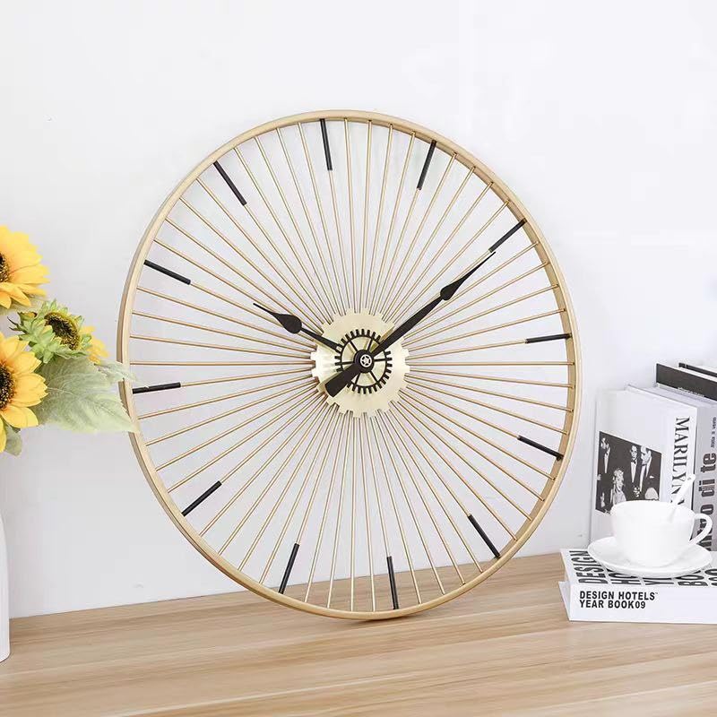 - تصميم أنيق: ساعة حائط كبيرة مقاس 60 سم تتميز بنمط أشعة الشمس الذهبي الفاخر مع علامات وعقارب سوداء بسيطة