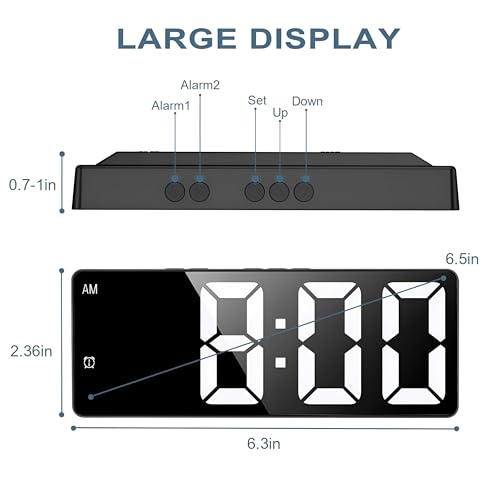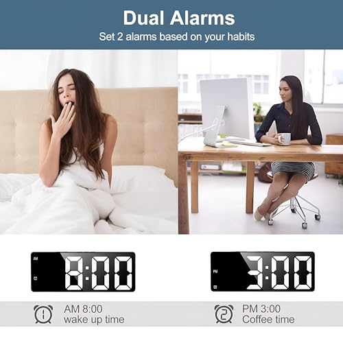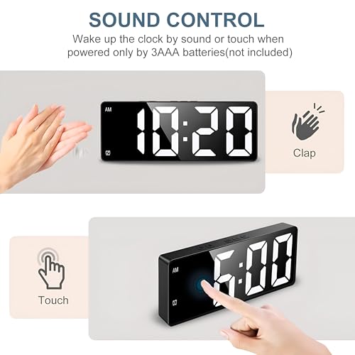 Generic - منبه مرآة عصري - عنصر ديكور أنيق مع إضاءة قابلة للتعديل، وظائف غفوة متعددة، يعمل بواسطة USB أو البطاريات، مما يجعل الصباح أكثر سلاسة والمساحات أكثر أناقة