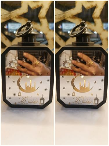 Generic - فانوس مراة عصري مع شمعة LED داخلية، فانوس زخرفي بلاستيكي خفيف الوزن للطاولة والرف، ديكور منزلي رمضان (اسود (قطعتان)