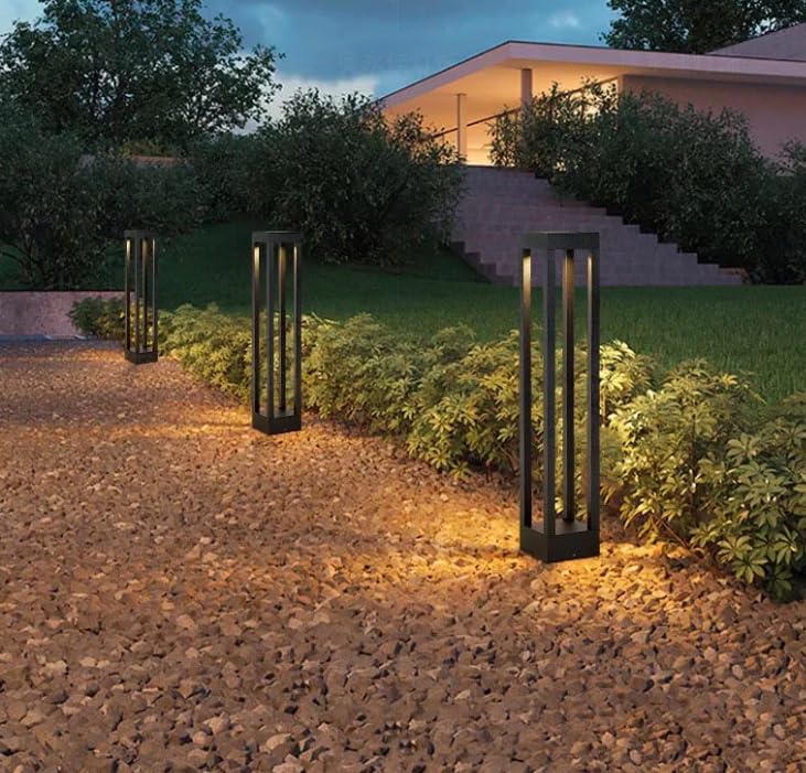 - تصميم عصري: مصباح حاجز أنيق من الألومنيوم الأسود مع هيكل إطار بسيط يخلق جمالية معاصرة للممرات والحدائق والمداخل الخارجية
