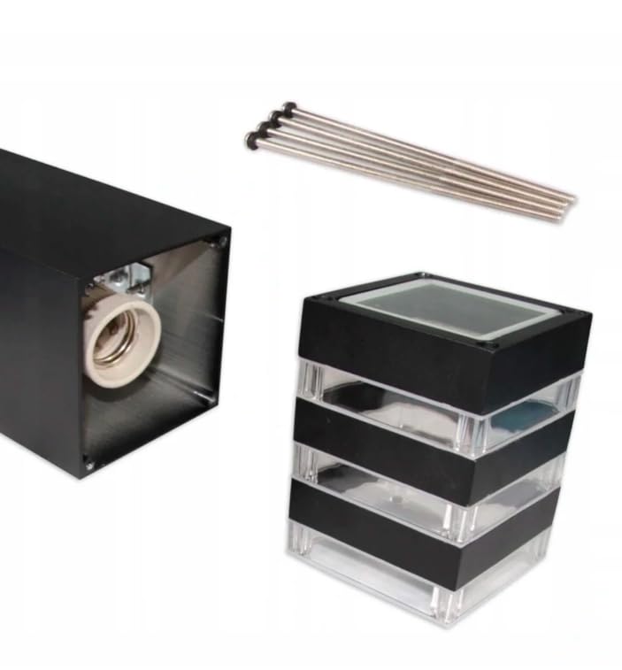 - تصميم عصري: مصباح عمودي أسود مستطيل الشكل بتصميم عصري، مزود بشرائط أفقية شفافة لافتة للنظر، يضفي تأثير إضاءة أنيقًا مثاليًا للمساحات الخارجية الحديثة.