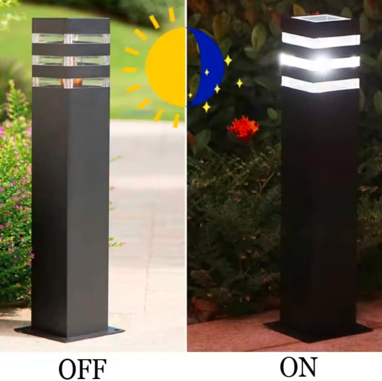 - الأبعاد: يبلغ ارتفاعه 60 سم بقاعدة مربعة متينة، وهو ارتفاع مثالي لإضاءة الممرات ومداخل السيارات والحدائق والممرات دون التسبب في وهج.
