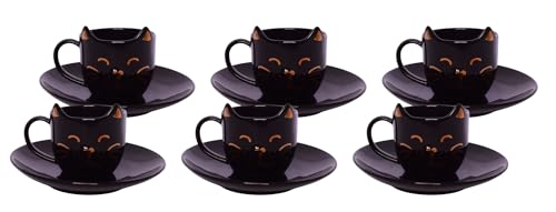طقم فناجين قهوة بورسلين عصري مع صحن مكون من 12 قطعة - اسود